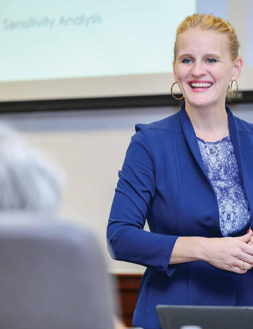 The 10 M.B.A. core courses are streamlined as 3 credit hours each, culminating with a 1-hour capstone—allowing students to complete an M.B.A. without a concentration in just 31 hours. The seven concentration options only require an additional two or three courses. According to Jones College Dean Joyce Heames, that simple math alone has boosted interest in the programs.