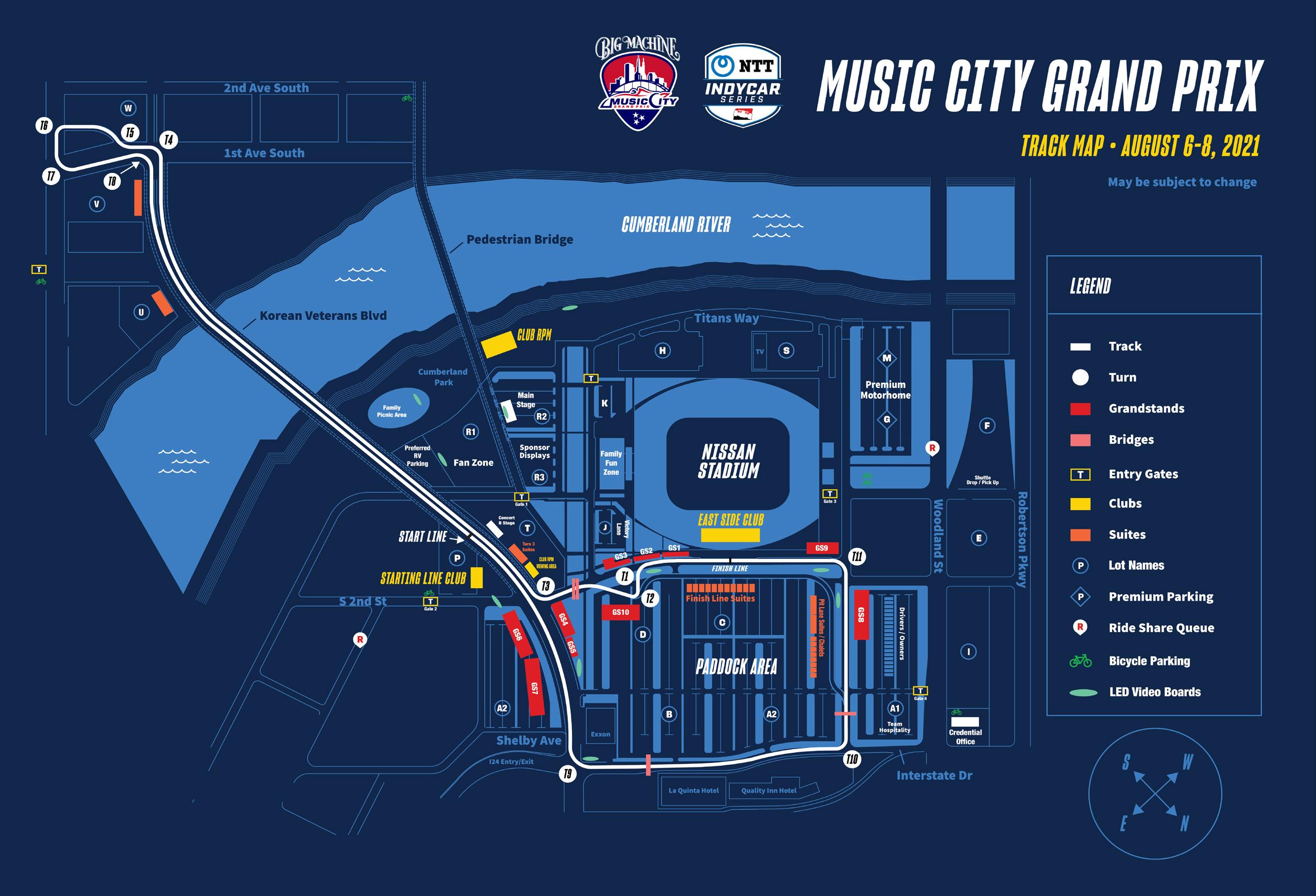 The temporary track, or street circuit, weaves past Nissan Stadium (home of the NFL Tennessee Titans), over the Korean War Veterans Memorial Bridge (a new, iconic look for the international sport), and into downtown Nashville.