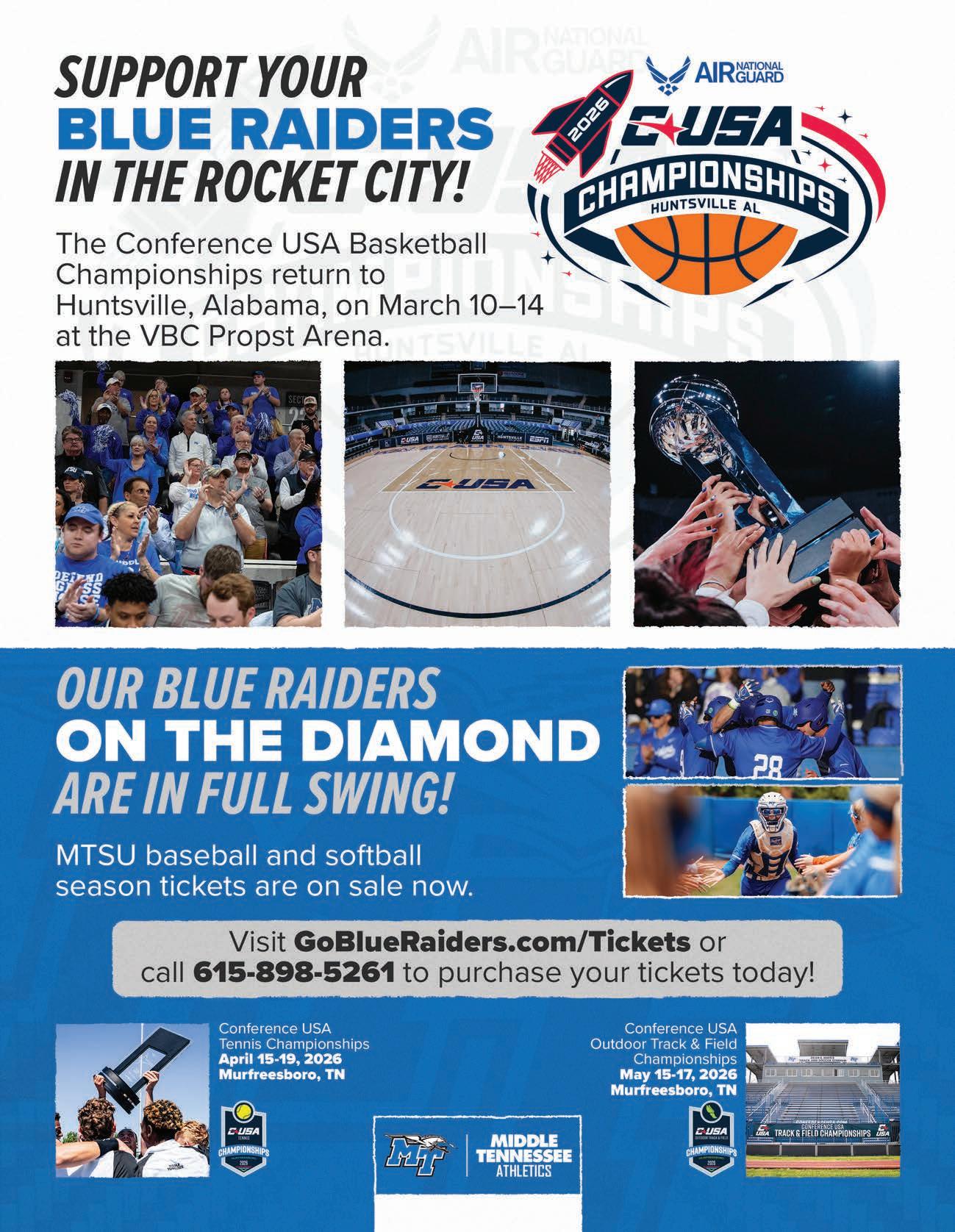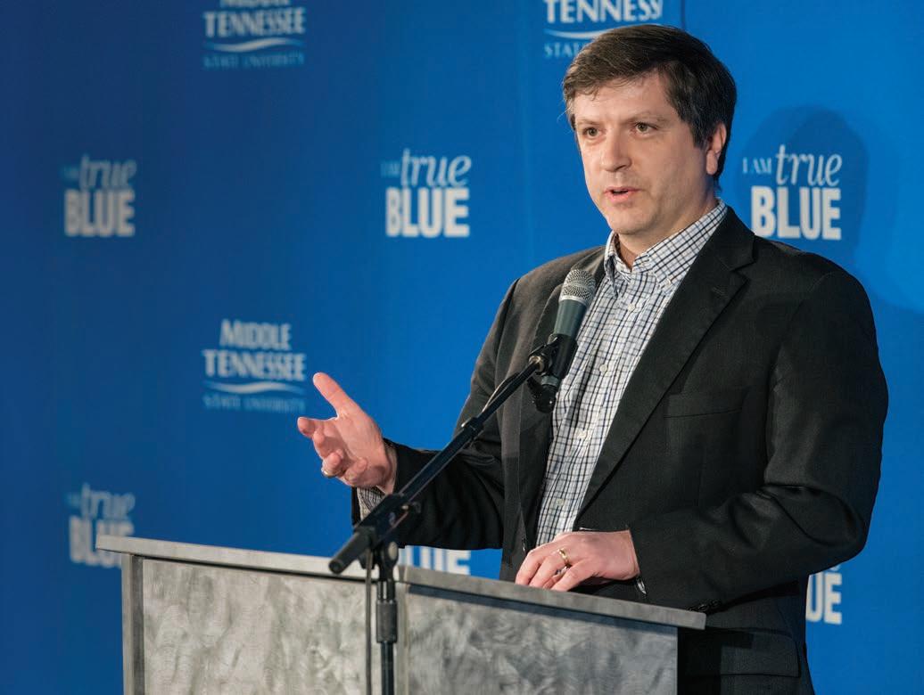 Starting with this issue, at the start of each new year, you’ll receive our newly revised MTSU magazine, designed to offer an insider’s perspective of what makes your University special. This isn’t a redesign—it’s a reimagining. Every issue will be curated with your level of commitment in mind, delivering deeper insights, behind-the-scenes stories, and exclusive previews of what’s ahead. You are receiving
