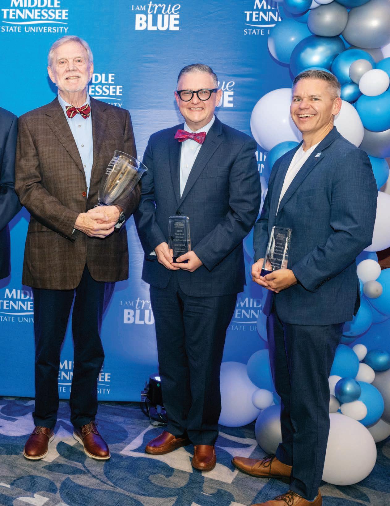 MTSU welcomed three new members to its Board of Trustees in September. The newest members, each serving six-year terms, are John Floyd of Murfreesboro, founder and owner of Ole South Properties; Jimmy Granbery of Nashville, chair and CEO of H.G. Hill Realty; and Chad White of Murfreesboro, executive vice president, general counsel, and secretary at Brookdale Senior Living. The board was recently expanded from eight to 10 appointed members. Also in September, the University celebrated and thanked outgoing trustee, alumna, and accomplished businesswoman Pam Wright, an inaugural board member who served since 2017.