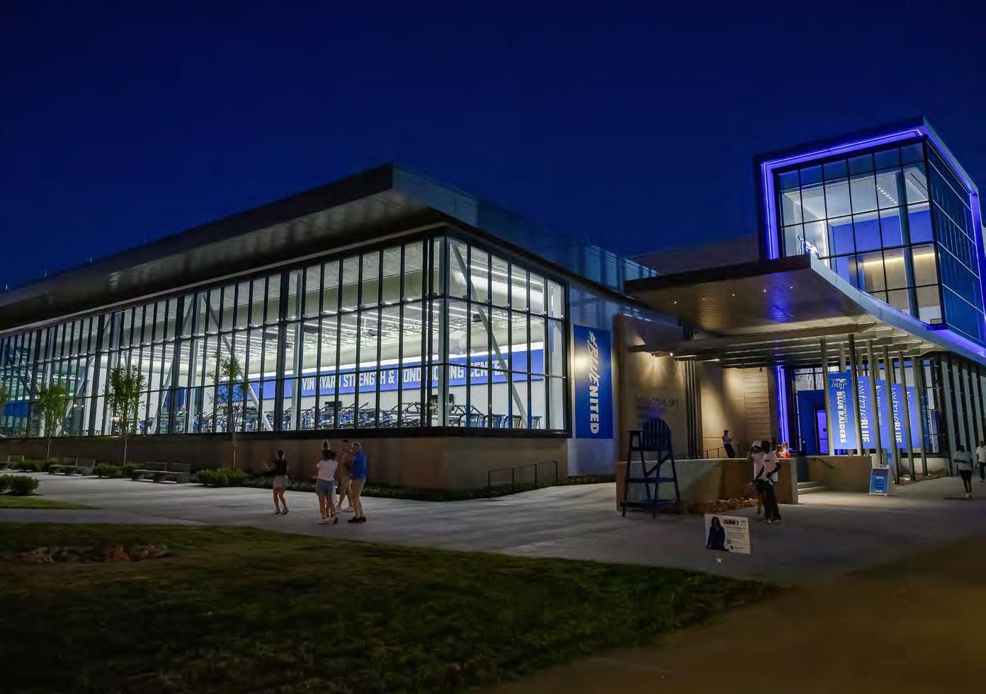 A major highlight of the year was the grand opening of the Stephen and Denise Smith StudentAthlete Performance Center, a game-changing facility located in the north end zone of Floyd Stadium. Designed to enhance the student-athlete experience in every facet—nutrition, academics, sports medicine, and strength and conditioning— the $66 million, 85,000-square-foot facility will be the premier resource for current and future Blue Raiders.