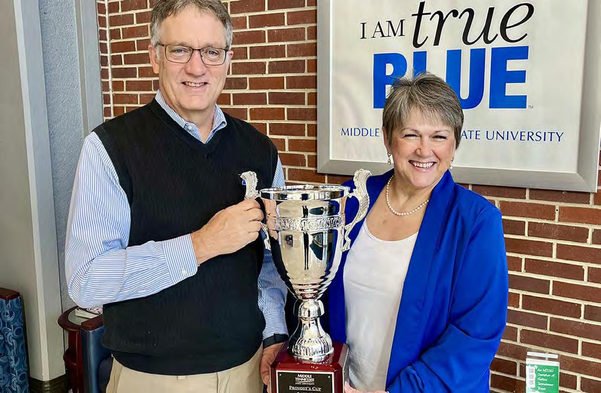 MTSU employees once again showed their True Blue support for the Midstate community by pledging a record $161,000-plus to bolster the critical work of nonprofit organizations through the annual Employee Charitable Giving Campaign. The $161,394.77 raised surpassed the $160,000 goal for the 2024–25 campaign and follows a string of record-breaking campaigns the past several years. The amount pledged by 768 donors equates to a pledge of $228.60 average per giver. For the 12th straight year, the Jones College had the highest percentage of faculty participation and was again awarded the Provost’s Cup.
