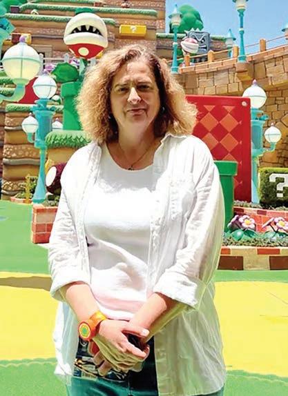 MTSU Theatre graduate Susan Cummings (’90) in front of Universal Epic Universe’s Super Nintendo World, a part of the new theme park that she helped create as executive producer Submitted photo