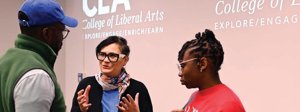Twenty-five years into my career in higher education, I a rm a strong commitment to the value of liberal arts education and its enduring value for our society. In this edition of CLA Magazine, you will find stories that demonstrate this ethos and celebrate the impactful work we are doing on campus and in the broader community. As our world changes, we may need to adopt novel approaches to meet the challenges we face. So I am glad the liberal arts prepare us to be adaptable, lifelong learners who are positioned to meet whatever challenges come. -