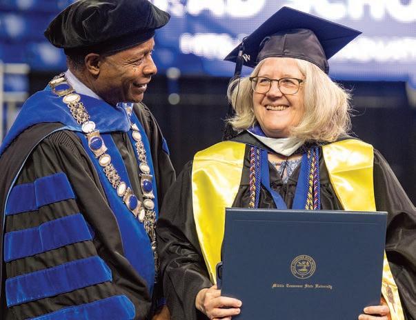 After the death of my younger brother in January 2018, I decided it was time to act. The MALA program was the perfect fit! I was able to take classes that greatly expanded my cultural understanding and academic aptitude in areas like human geography with Dr. James Chaney, e ective listening and communication with Dr. Janet McCormick, and detective fiction with Dr. Joan McRae. The liberal arts foundation of the program was the perfect pathway for crafting my career in higher education as an academic advisor. I gained a deeper understanding of the human experience, socioeconomic inequities, and cultural biases that provided the perfect foundation for my thriving career at MTSU. The MALA program allowed me to finally, in my early 50s, work with students from various backgrounds who want to learn and persist in the face of everyday obstacles, challenges, and accomplishments of both higher education and life in general. I am happier in my current career than I have ever been as a working professional. I would absolutely not be in this highly satisfying position had it not been for the invaluable opportunity to earn this degree.