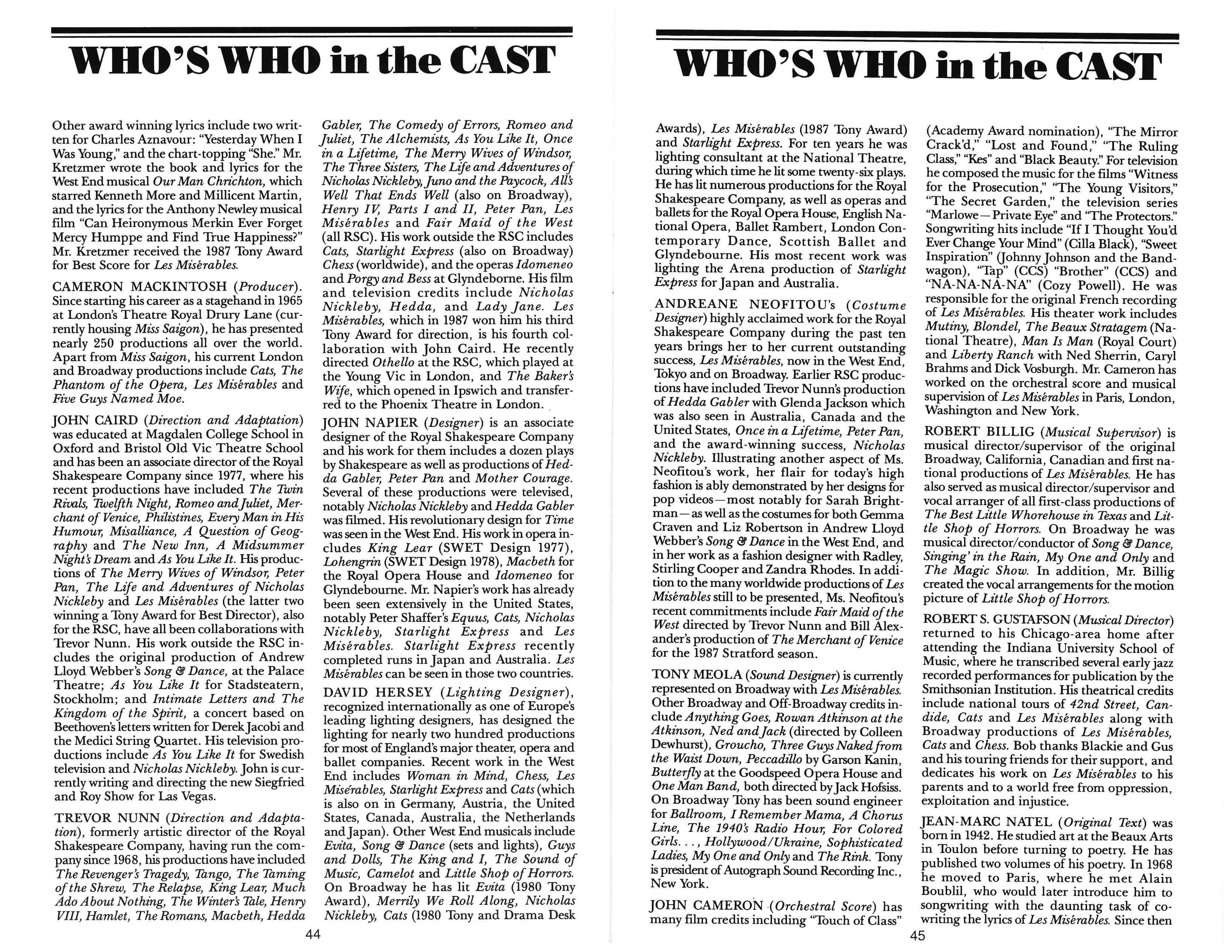 Les Misérables Playbill 1992