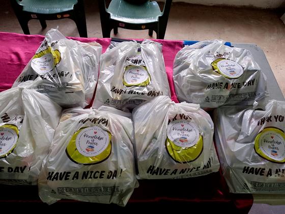 8 Hampers (One not featured) were distributed, Places such as Barrackpore, Golconda, Williamsville received and three was donated to the Community of Indian Walk.