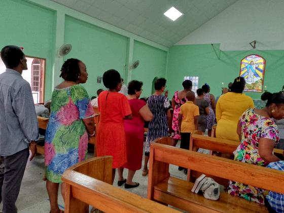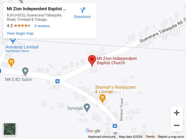From the Junction of Sister’s Road Hardbargain, near to the Upper Room Pentecostal Church, the church is located along the Guaracara Tabaquite Road the first building on the right.