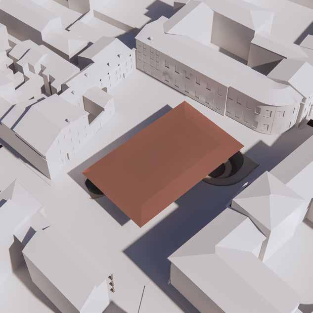 The idea of the project born from preserving the integrity of the monumental landmarks of the context, in order to conceive the urban scale and enhance the pre-existance of the place, such as the historic Palazzo D’arco. The meeting point of the two important axis, coming from the historical center of Mantua and the station an urban vaid is established, is heart of the project itself. The main part of the building is buried and surmounted by a very light cooper roof which creates continuous games of light and shadow in the interior space of the square. Another fundamental aspect of the design is the choice to make an opposite dialogue between the rigid element on the surface and the organic underground square. It’s possible to notice how the first element (the roof) follows the surrounding urban context and the second one (the square) gives totally diffirent perseptions creating a new special environment for the city of Mantua.