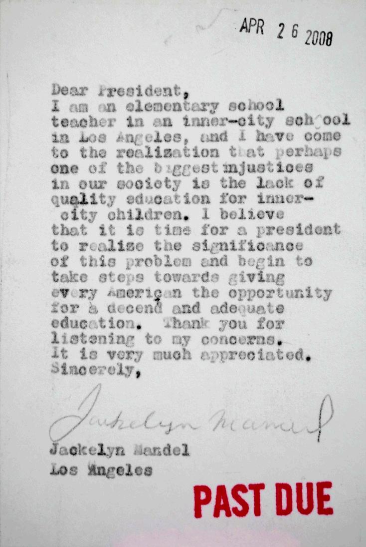 Now enacted across the time and space of twenty years, Oring asks the public to dictate postcards to the current or next US president. She types the messages verbatim with a typewriter, only limited by the size of a standard index card. Carbon paper makes a duplicate of each message—one for her to exhibit and archive and the second to mail to the president. To date she has typed over 4,241 postcards. This exhibition celebrates the meaningful impact of Oring’s project across the past two