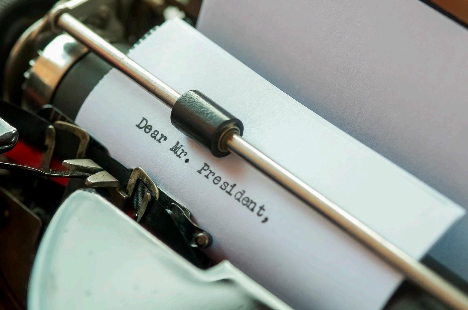 Oring then developed I Wish to Say in 2004 based on an invitation from the First Amendment Project in Oakland, CA. She had displayed Writer’s Block in NYC’s Bryant Park and received an invitation to show the work on the West Coast, but the organization did not have a budget to ship her sculptures cross country. For her new social practice project, she drew on her experiences conducting person-on-the-street interviews as a journalist; her grandmother’s work as a secretary who always dressed to the nines; returning from Berlin, where she lived for six years, and feeling out of touch with what the US public thought about politics; and the Brazilian movie Central Station (1998), in which a woman takes dictation in the central train station for people who are illiterate. Whereas Writer’s Block took away the writer’s tools, I Wish to Say aimed to activate democracy by encouraging members of the public use their voices. At the start of this project, the public dictated messages to Oring dressed as 1960s styled secretary with a typewriter. She used carbon paper to make a copy, sending one to the White House and keeping one for her archive and exhibitions. Since then, she has expanded her typing pool to include additional typists and has created related artworks, expanding the initial form of her project. In this interview, exhibition curator, Corey Dzenko, and Oring discuss some of the origins of I Wish to Say, the way some of Oring’s lived experiences and activism intertwine with her artmaking, and what she may start to work on next.