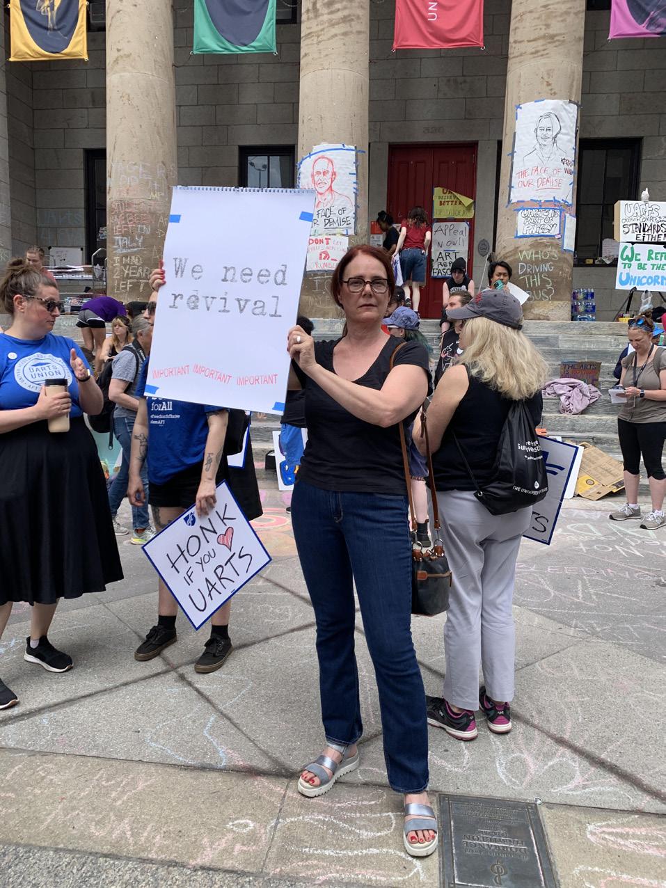 Sheryl Oring joins the protests about the University of the Arts sudden closure, Philadelphia, PA. June 5, 2024.