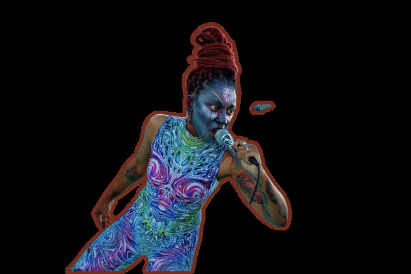 Black punk vocalist and performance artist active in underground DIY scenes.