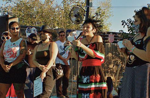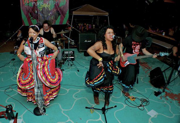 That exclusion pushed me to do the punkest thing I could think of: build my own scene. Since 2017, the feminist punk collective I started, Xingonas in the Pit, has been doing exactly that. In 2018 we launched Texas’s first Black & Brown Punk Fest, which returned in 2019. We’ve also organized additional fests, shows, workshops, the plus-size clothes swap Thick Bitch, a Covid Conscious Craft Club, and more. After a pandemic pause and some burnout, an incredible team of volunteers across Texas helped us bring the fest back stronger and more intentional than ever.