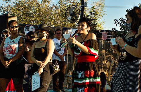 Accessibility was political, not optional. Safety, clean air, and care were central. All acts performed outdoors for better airflow. Volunteers secured the ADA entrance for wheelchair accessibility (shoutout to Crystal for crushing it at the entrance). Supporters provided masks and air purifiers (huge thank you Covid Conscious Bloc of San Antonio, Clear the Air Austin, and NALAC). Despite the ableist hellscape we live in that sacrifices our health to capitalism, I firmly believe: masking is community care. Clean air is a right.