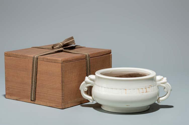 4008 清代 宣德年製款 德化香爐 直徑 13.1 高 7 公分;附供箱 款識:宣德年製。 A Xuande Year-made Dehua Incense Burner, Qing Dynasty Diameter 13.1 Height 7; with box TWD: 30,000 RMB: 6,944 4009 清代 德化白瓷香爐 直徑 8.1 高 5.6 公分;附供箱 A Dehua White Porcelain Incense Burner, Qing Dynasty Diameter 8.1 Hight 5.6 cm; With box TWD: 40,000 RMB: 9,259