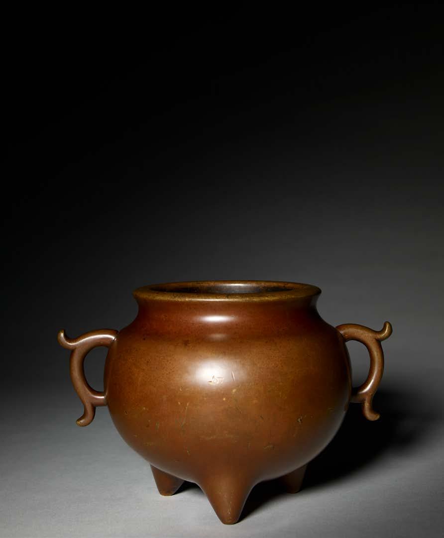 A Xuande Three-legged Bronze Furnace, Early Qing Dynasty Diameter 14.7 height 8.6 cm; weight 1603 grams TWD: 200,000 RMB: 46,296