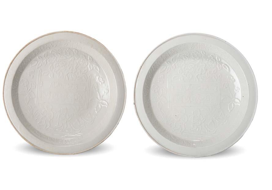 41 東京中央沐春堂 4037 宋代 定窯 劃花淺碟一對 直徑 21.8 高 2.5 公分;附供箱 A Pair Of Ding Kiln, Song Dynasty Diameter 21.8 Hight 2.5 cm; With box TWD: 200,000 RMB: 46,296 台灣重要藏家-阜春居主人珍藏 lot4037-4062