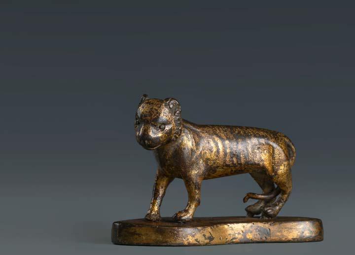 東京中央沐春堂 4022 清代 德化白瓷 玄天上帝 高 24 公分 A Dehua White Porcelain Civilian Statue Height 24 cm TWD: 35,000 RMB: 8,102 4021 清代 銅鎏金虎爺 長 8.7 寬 3.2 高 5.6 公分 來源:台灣重要藏家-阜春居主人珍藏。 A Gilt Bronze Tiger Lord, Qing Dynasty Length 8.7 Width 3.2 Height 5.6 cm TWD: 20,000 RMB: 4,630