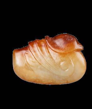 3045 元代 黃玉鴛鴦掛件 長 3.5 寬 1.2 高 2.3 公分 A Yellow and Russet Jade 'Duck' Pendant, Yuan Dynasty L 3.5 W 1.2 H 2.3 cm TWD: 60,000 RMB: 13,889