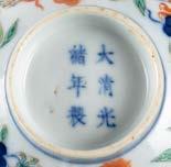 70 3058 清光緒 清華珍品款 粉彩杯一對 直徑 5 高 3.9 公分 款識:清華珍品。 A Pair of Famille-Rose Cups, Mark of 'Tsinghuazhenpin', Qing Dynasty, Guangxu Period D 5 H 3.9 cm TWD: 10,000 RMB: 2,315 3057 清康熙 五彩雙獅戲球罐 直徑 26 高 32 公分 可索取品相報告 A Polychrome 'Lion Play Ball' Jar, Qing Kangxi Period D 26 H 32 cm TWD: 5,000 RMB: 1,157