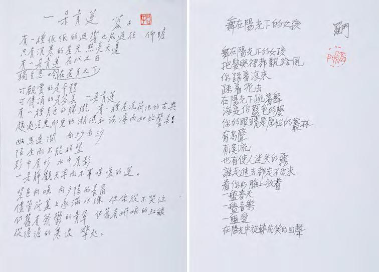 1987 年出版《美麗島與少年中國》,2007 年淡江大學 立下李雙澤紀念碑,由蔣勳題字,同年舉行紀念演唱會,由 陶曉清主持、胡德夫與楊祖 再度合唱《美麗島》。2009 年, 《敬!李雙澤/唱自己的歌》獲金曲獎評審團獎。他的生命短 暫而密度極高,其留下的文本、畫作與歌曲成為理解七〇年 代台灣文化變動的重要座標。