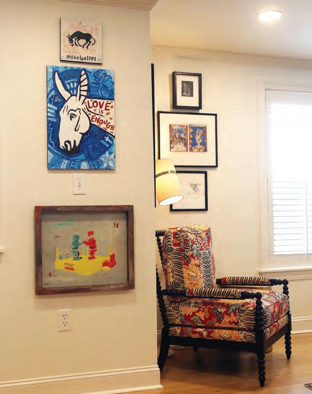 Their love of art is long-lived. Meredith was an art major, while Brent was a business major with artistic sensibilities. Their collection includes the work of plenty of Southern and Mississippi artists, along with pieces Brent painted himself.