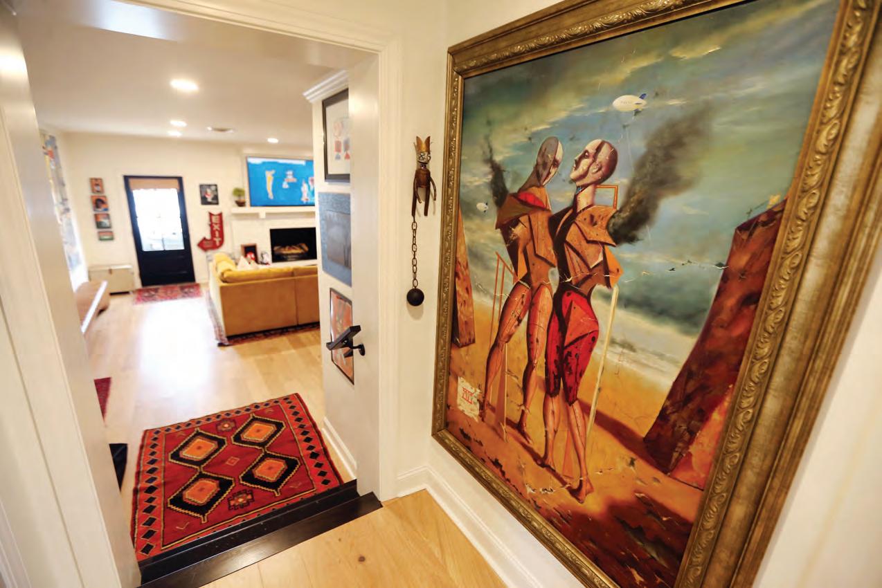 From a den with a mix of vintage and modern furniture and an Elvis-themed bathroom to bedrooms and hallways featuring paintings by local artists like Charlie Buckley, Mary Art Contrary and Melonie McCarley Counce, the Martins’ home is