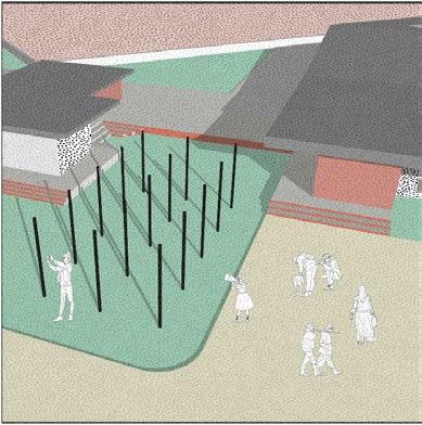 The design interpretation analyzes the exclusivity of new proposed program and uses commemoration to imagine a space that truly represents the site context and the people