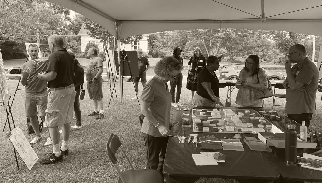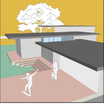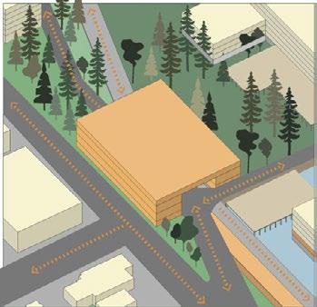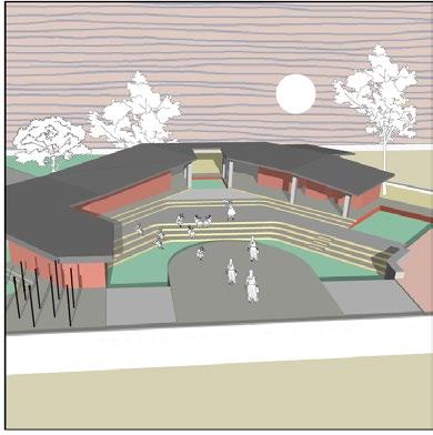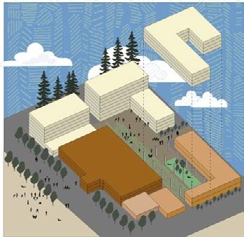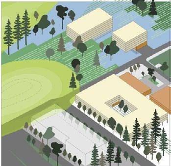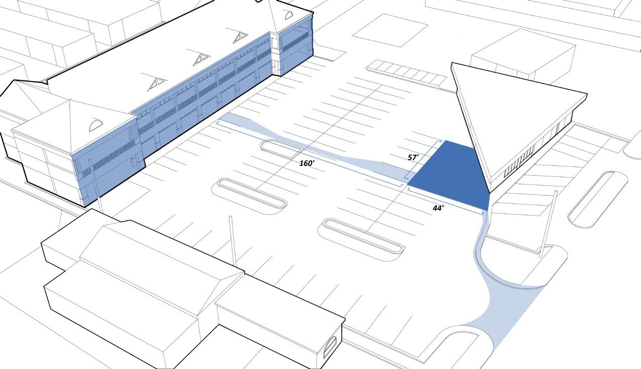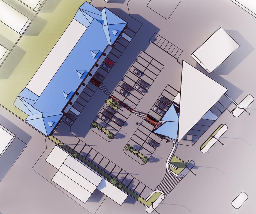 reducing footprint and accomodating parking needs, adding memorial spaces along the main program.