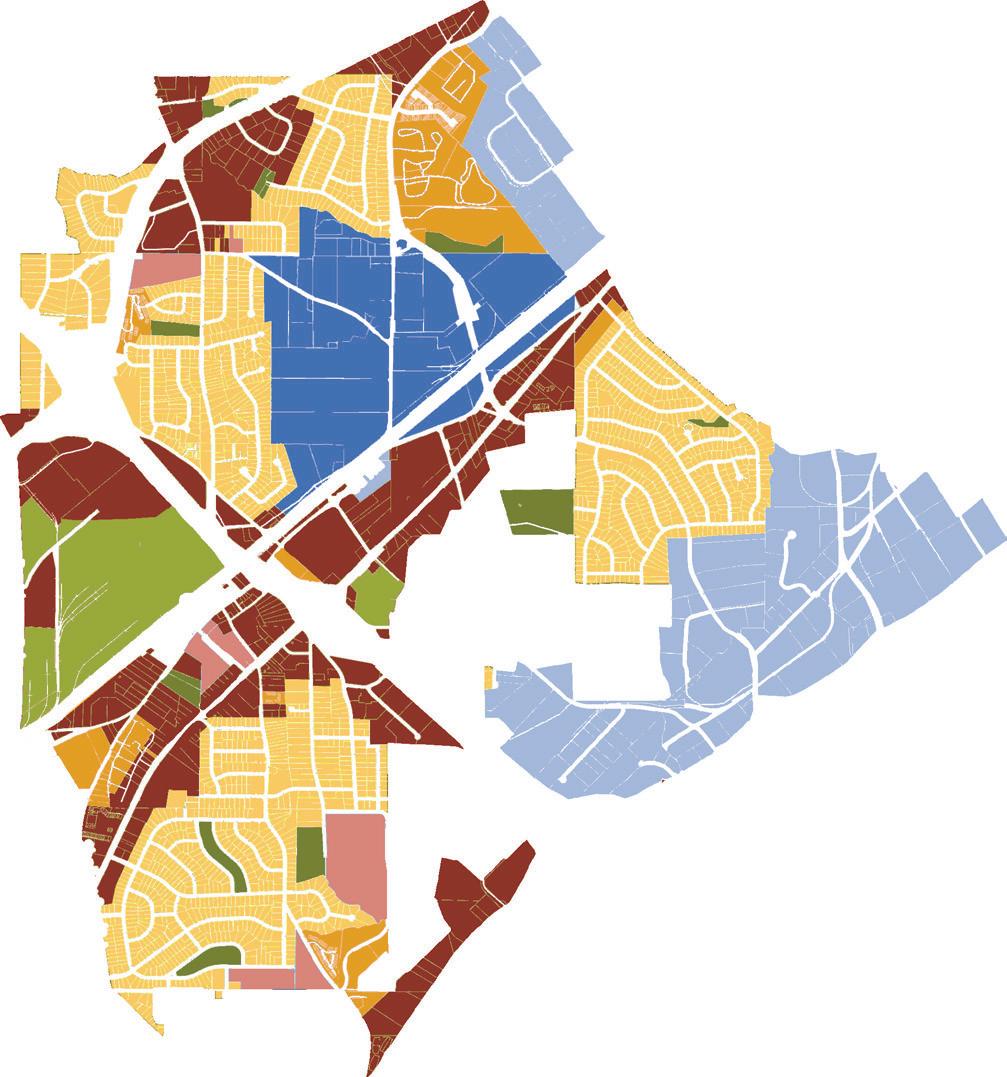 The four systems come together in each of the four different neighborhoods to represent a multicoloured fabric across Interbay.