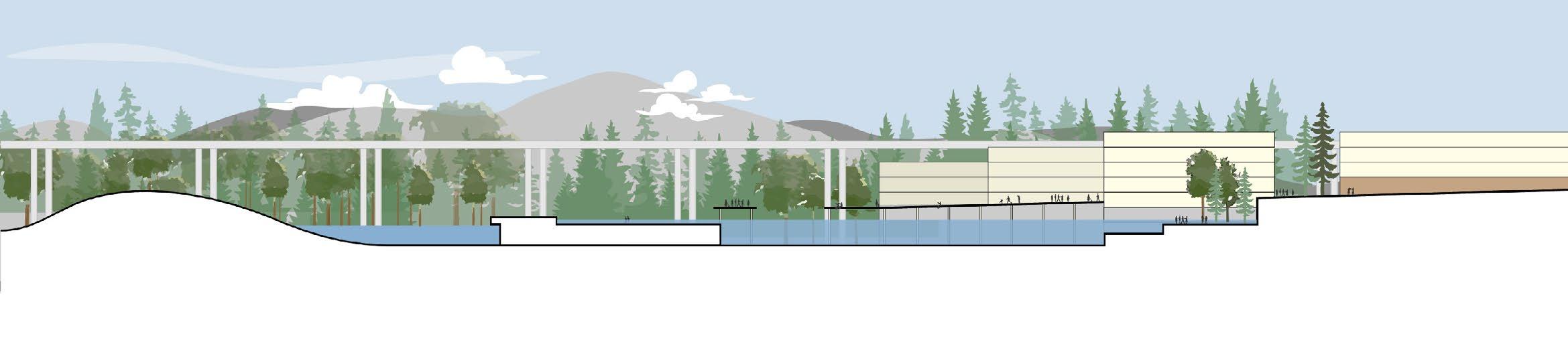 The Marsh living is a submersed experience meant to be flooded. The existing industrial seams stretch out from the tiered train tracks, which after sea level impact reminisces past like the ‘Seattle Underground’.