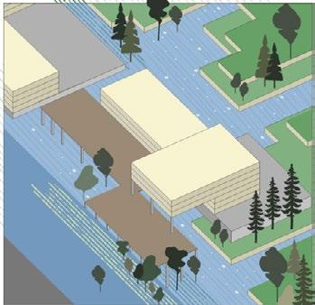 This area houses some large warehouses in relatively good condition, which were repurposed to accomodate barge building facilities. These, when they reach their end , can be redeveloped, with the street-side of the property to become a culinary arts institution which partners with the urban greenhouse operations. Students at the culinary school could also find housing here.
