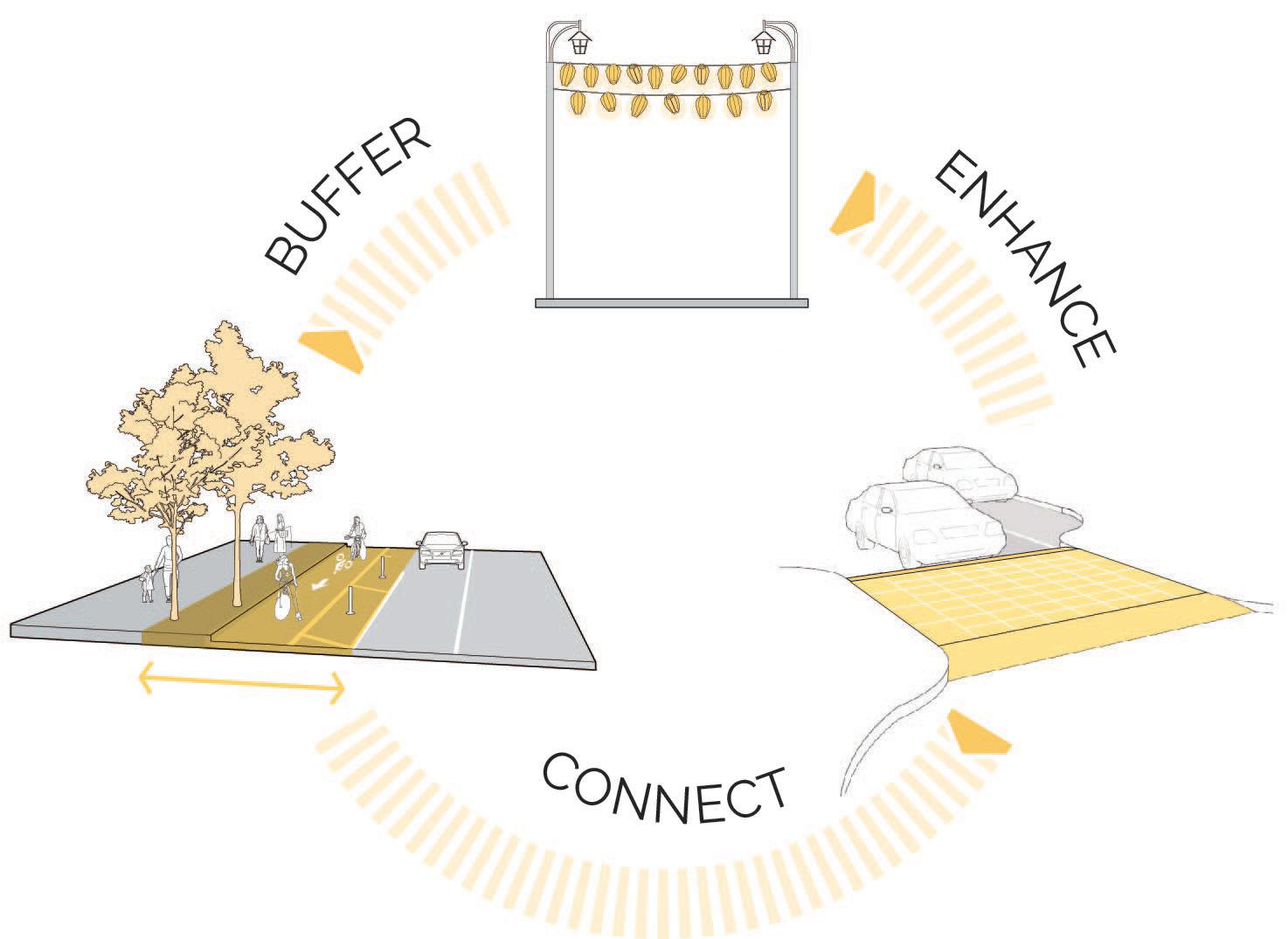 Software used : ArchiCAD, Photoshop, Illustrator, QGIS, Indesign, AutoCAD, Affinity. The Mobility stitch