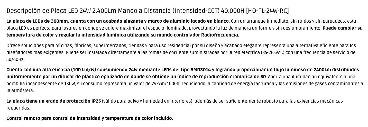 Placa LED 24W 2.400Lm Mando a Distancia (Intensidad-CCT)