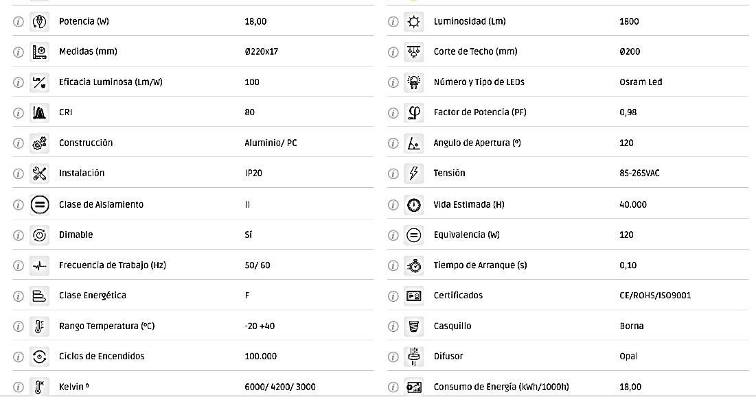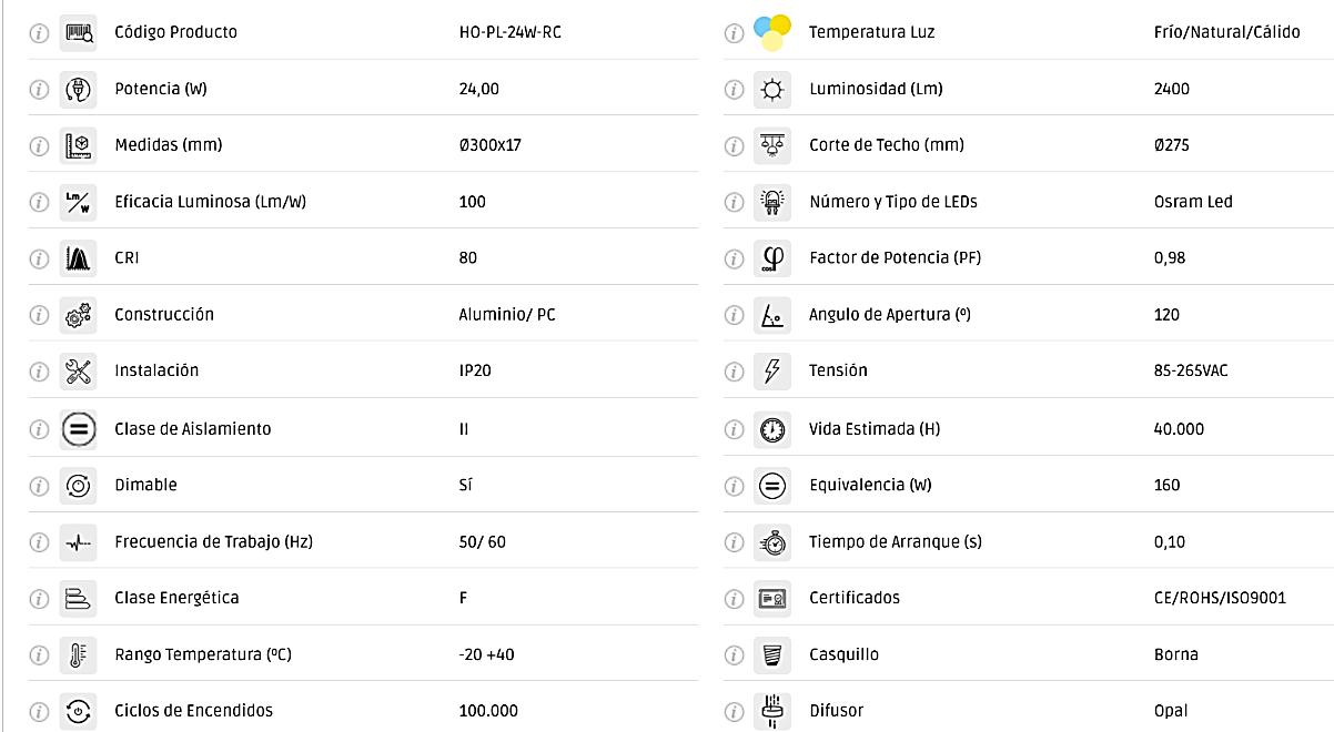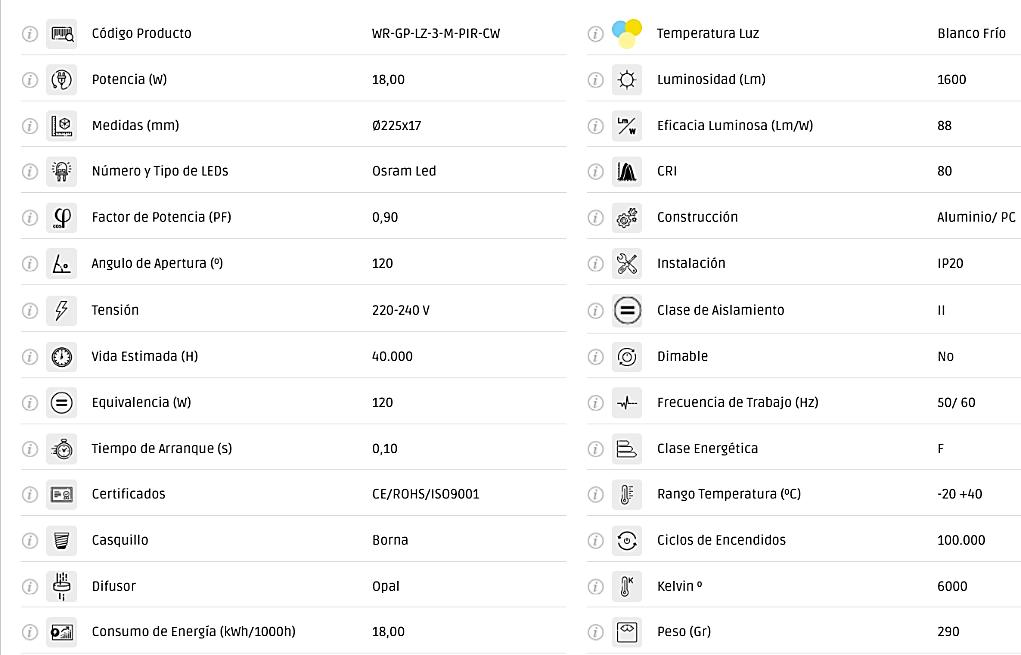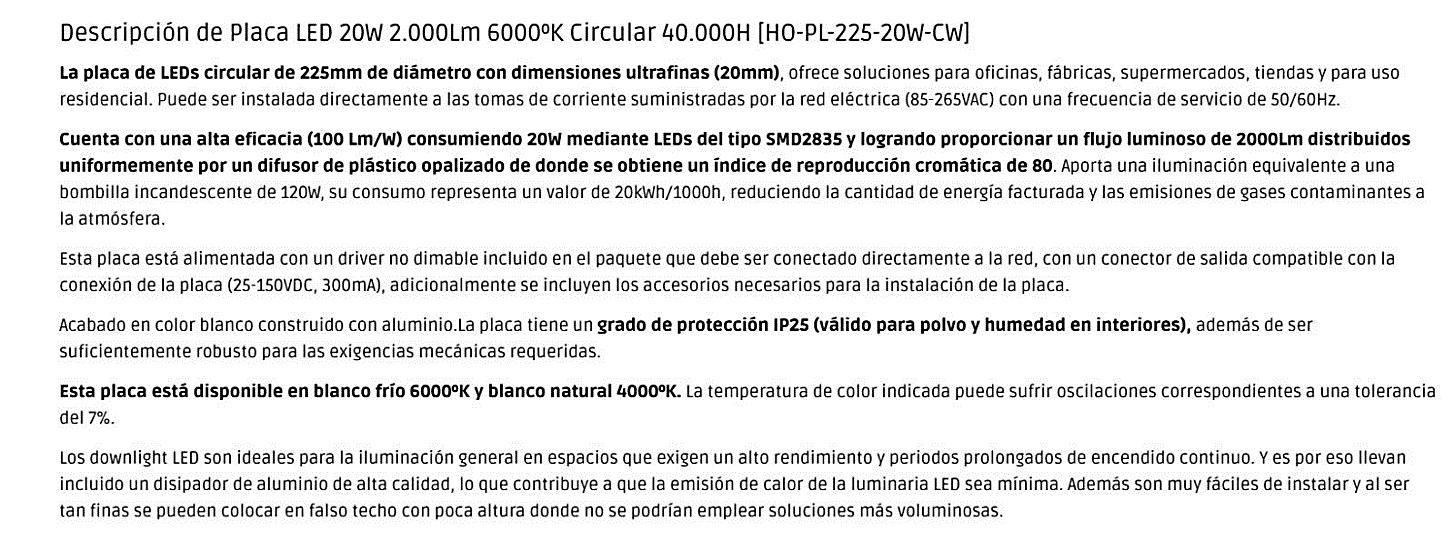 Placa LED 18W 1.380Lm 6000ºK Circular 40.000H [HO-GP-LZ-3-B-CW]