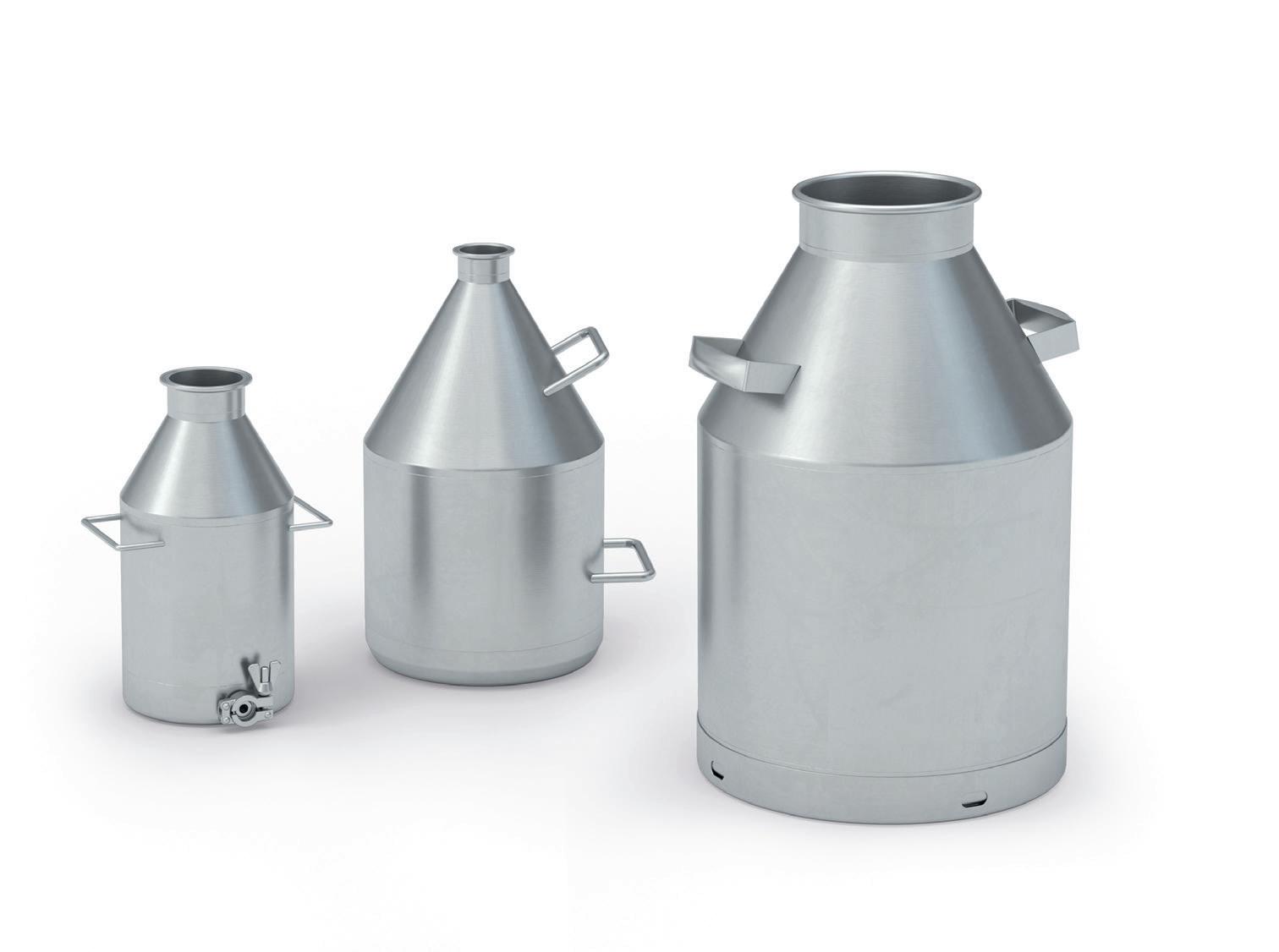 Stainless steel bottles and hopper cans.