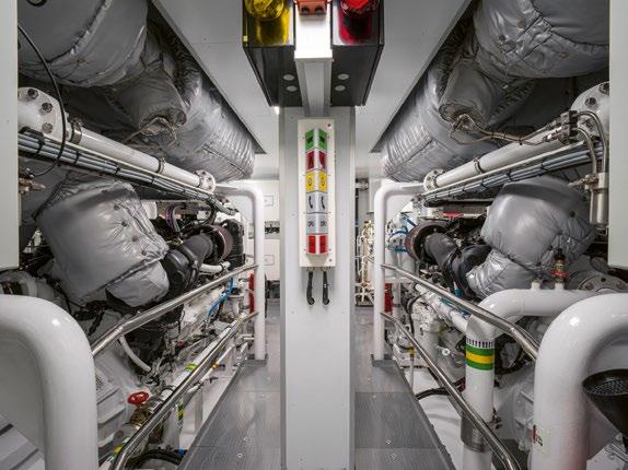 Die Yacht ist mit einem modernen Hybridantrieb ausgestattet, der die Kraftstoffeffizienz der Hauptmotoren und Generatoren erhöht und den Komfort der Gäste während der Fahrt verbes -