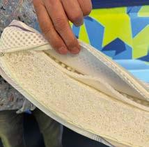 Das Polster-Innere bestehe dabei komplett aus Polyesterfaser, das aus recycelten PET-Flaschen gewonnen werde. Seine strapazierfähigen, etwa fünf Zentimeter dicken Sitz- und Liegepolster seien zudem auch FC-frei, da seine Textilbeschichtung auf Wasserbasis beruhe, sagt Bauer.