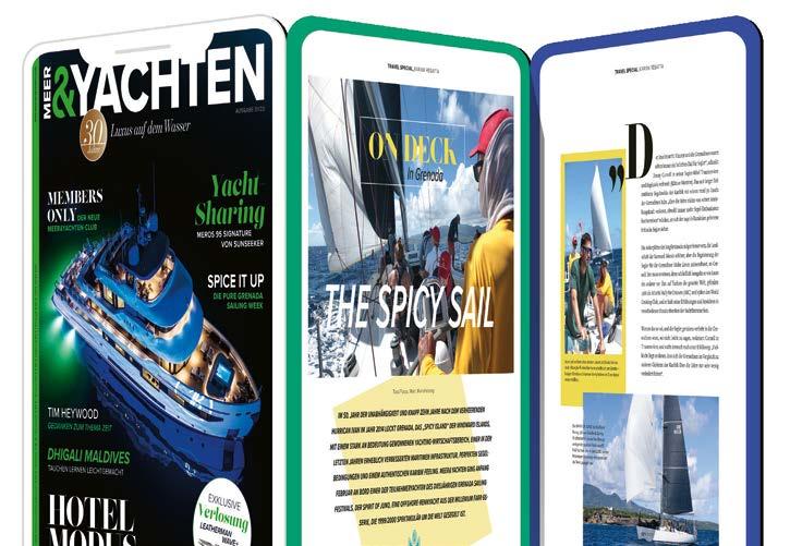 www.meerundyachten.com Deutschland 9,00 € I Österreich/Luxemburg/Spanien 9,50 € I Schweiz CHF 15 I Frankreich 9,50 € I Griechenland 9,50 € I Italien 9,50 € I Portugal 9,50 € I DKK 70,00 DKK HOTEL MODUS MEMBERS ONLY TIM HEYWOOD GEDANKEN ZUM THEMA ZEIT MEER YACHTEN B.YOND 37M-HYBRID VON BENETTI AUSGABE 01/23 SPICE IT UP DIE PURE GRENADA SAILING WEEK Luxus auf dem Wasser MEER&YACHTEN-CLUB DHIGALI MALDIVES TAUCHEN LERNEN LEICHT GEMACHT 3Jahre0 YachtSharing MEROS 95 SIGNATURE Verlosung EXKLUSIVE LEATHERMAN DER NEUE VON SUNSEEKER