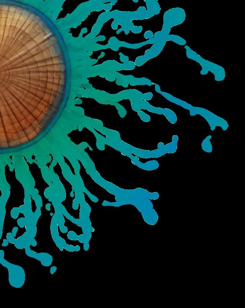 水母除了透明無色的印象色外,還有沿海 水母的「共生藻」色,除了供給水母能量外, 也為水母帶來繽紛的色彩,同時共生藻的 數量也會影響水母體色與身體狀態。深海 水母則呈現的暗色系,且大部分具有生物 發光能力,能在漆黑的深海中傳遞訊息。