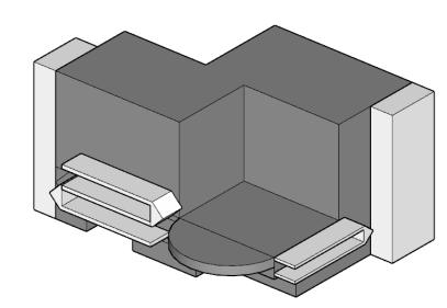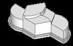 Maket terinspirasi dari bentuk daun yang dilengkungkan dengan permainan 2 bidang tegak vertikal sudut kemiringan 90 derajat d a n 4 5 d e r a j a t .