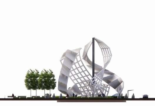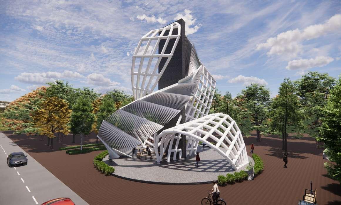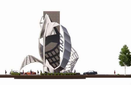LeafToweradalahfollybangunansebagaipenghiastaman yang berada di taman kota. Bentuk ini terinspirasi dari bentuk dedaunan yang ada di taman kota. Bangunan yang berfungsi sebagai penunjang kegiatan pendatang untuk duduk, bermain, dan melakukan aktivitas lainnya Bangunan dengan struktur baja dan frame ini mempunyai ketebalan20cmdan1buahbidangstrukturtinggivertikal.