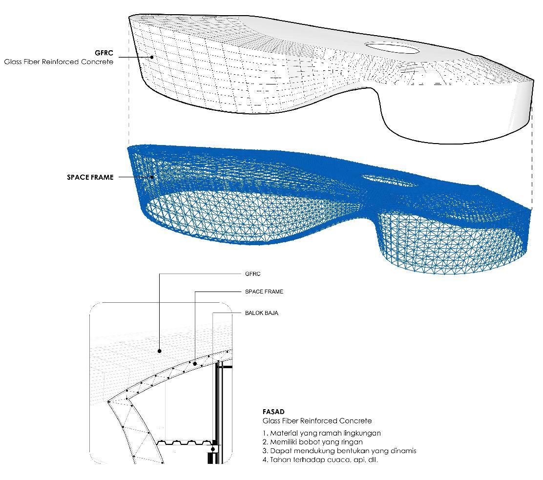 Penggunaan material GFRC pada fasad dan memberikan detail pada entrance.