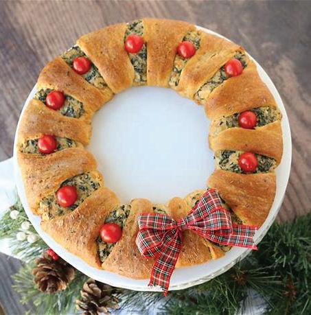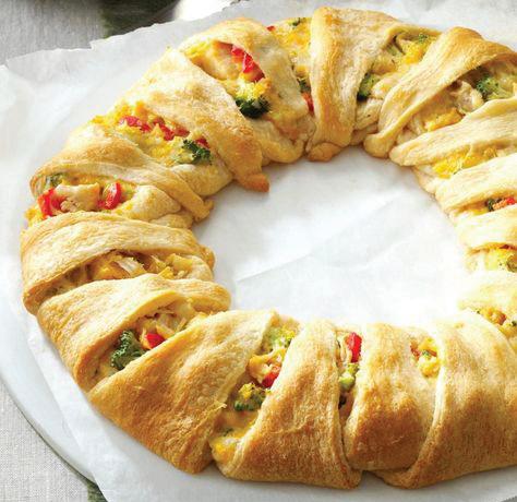 This wreath is an impressive-looking dish that is a snap to prepare. It does not take long to make, so that is a plus during the holidays. The red pepper and broccoli add a festive touch. This wreath utilizes chicken. I have made them with chopped ham, ground beef and vegetables.