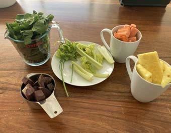 La receta de esta ocasión es el jugo de verduras que tomo media hora o una hora después de haber tomado mi tónico auto inmune. Dejo las verduras desinfectadas en el refri desde la noche anterior y las prenso en la prensa en frío. Utilizo un popote para evitar manchar los dientes. Si alguna vez viste la caricatura de Popeye, casi casi te sucederá lo mismo. No se hincharán tus músculos al instante, pero notarás que tendrías muchísima energía durante el día.