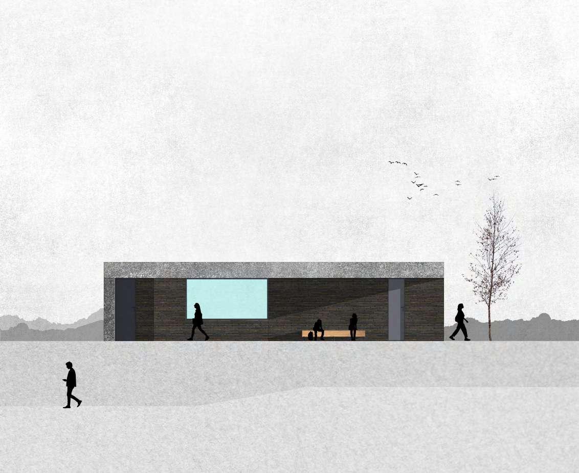 Pavilion with informational and service rooms, «rooms» for contemplation