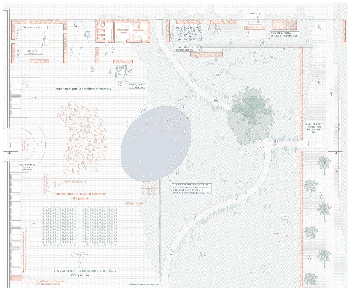 of the ceremonial area plan with axonometric elements (Scale 1:200). Usage scenarios