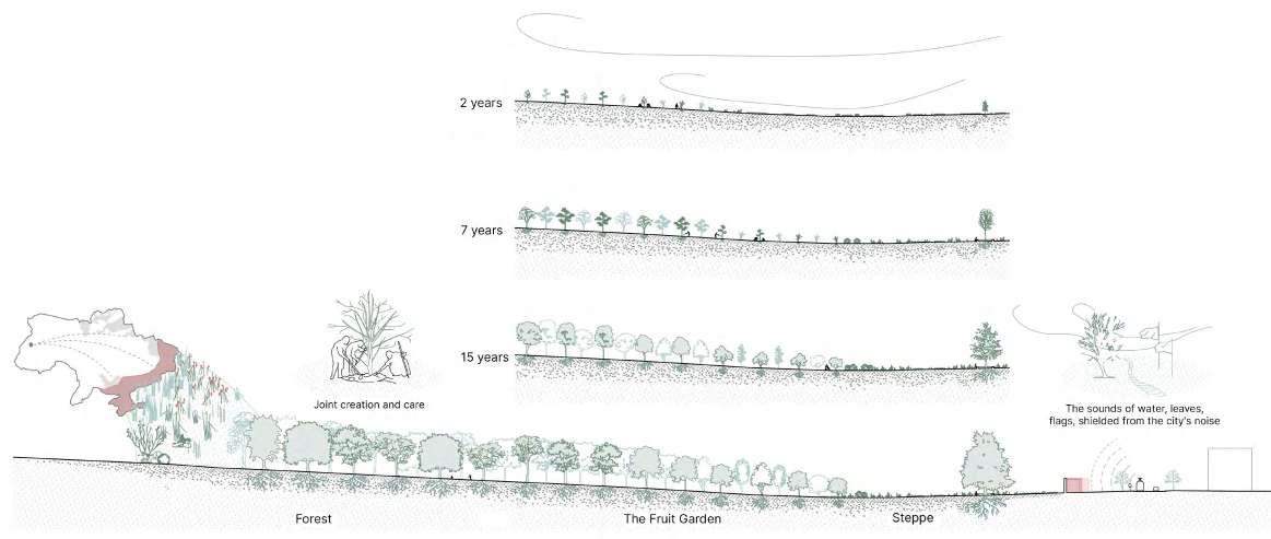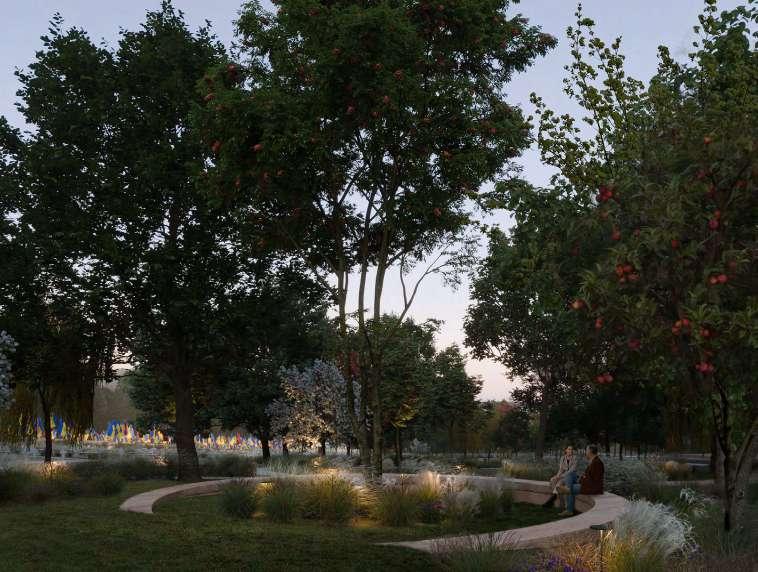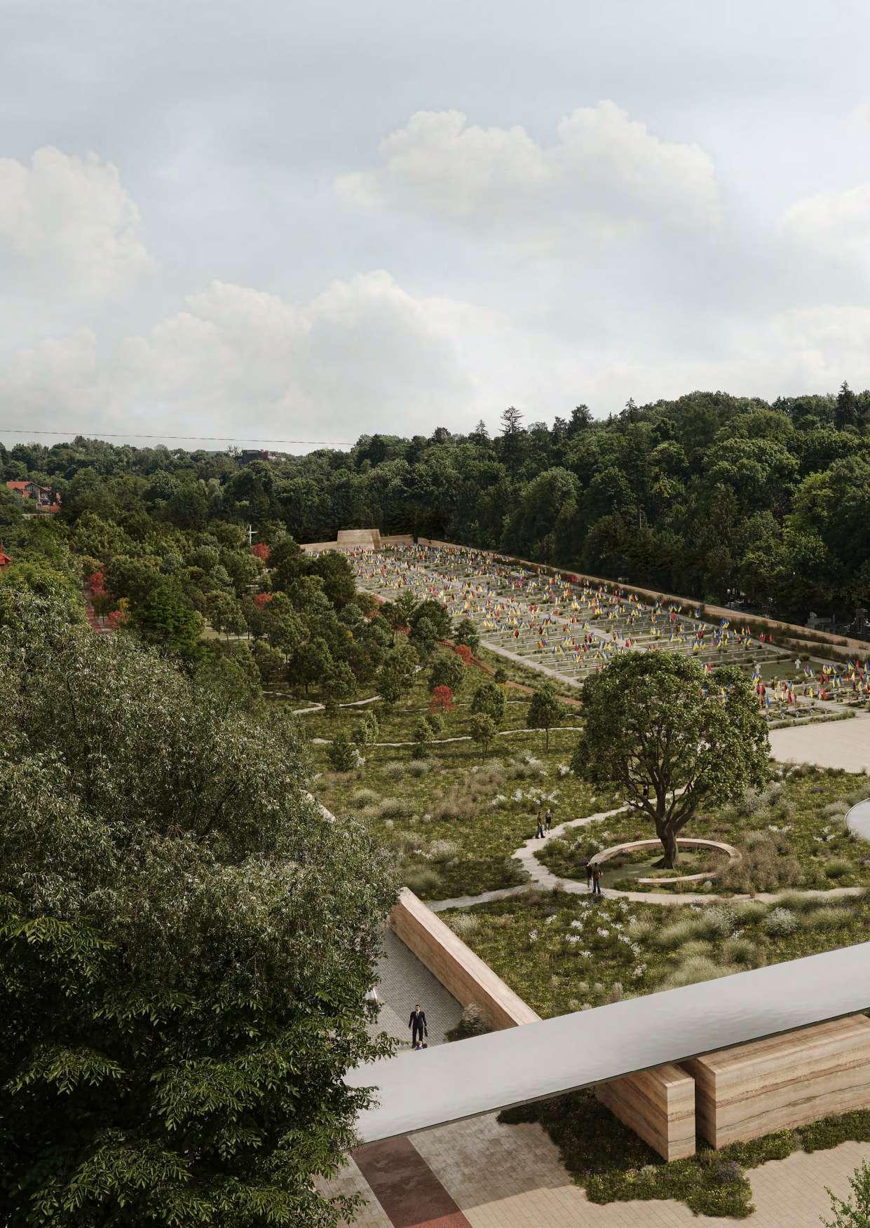 How do we remember? This question laid the foundation for our work on the Memorial project. We believe that collective memory is not etched in monuments but nurtured by people. Consequently, memorial architecture should transcend physical forms, striving to create spaces where memories are cherished, sustained, and transmitted across generations. Our vision of the memorial takes shape as a garden that embodies the care and rejuvenation of the Ukrainian land defended by fallen soldiers. This ever-evolving space is cultivated year-to-year through a collaborative tree-planting initiative with the city’s community, families of the fallen warriors, veterans, and volunteers. This garden is a symbol of our long-term commitment to remembrance.