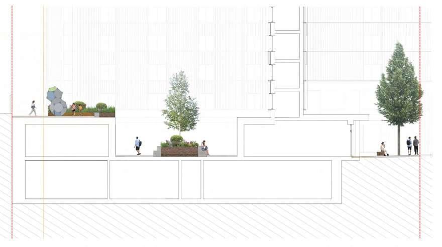For the Stage 2 issue, I developed layouts for all levels, visual plans, and site sections. This included creating conceptual collages, street view sketches, Illustrative plans, sections and texture details.